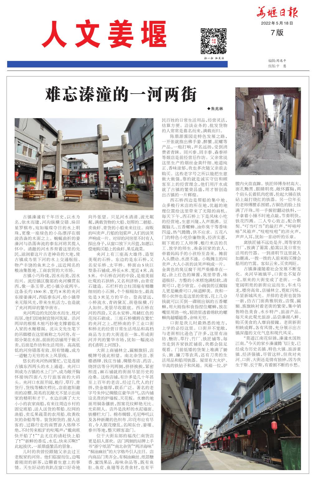 “莫道江南花似锦,溱潼水国胜江南。”今天的家乡溱潼腾飞巨变,已经成为历史名镇、特色大镇、旅游重镇、经济强镇,尽管这样,但我对夹河、口街、大街还是情有独钟,因为我生于斯、长于斯,有着割不断的乡愁。