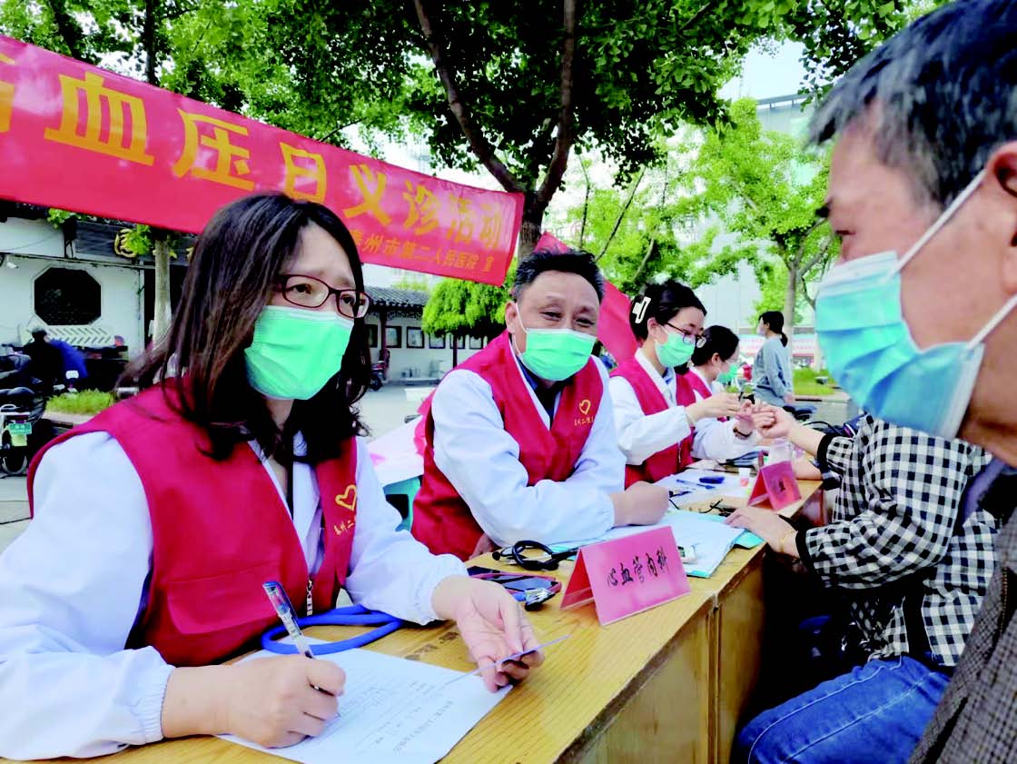 昨日是第18个世界高血压日,活动主题是“精准测量 有效控制 健康长寿”,市第二人民医院组织心血管专家在街头设立义诊服务站,普及高血压防治知识,为市民提供义诊服务。