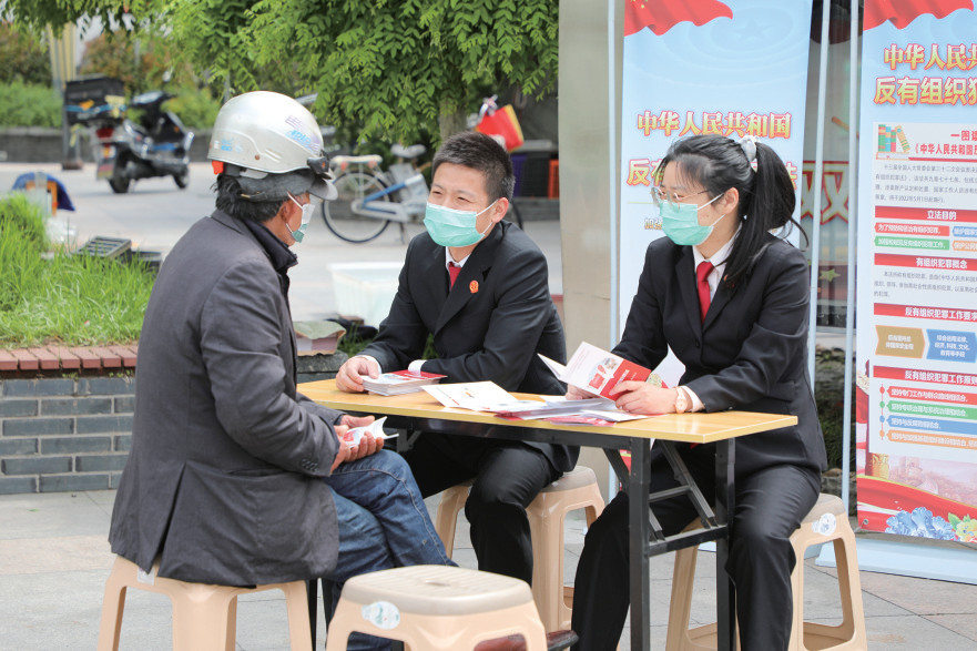 本报讯(通讯员 孙润琪)日前,区法院团支部组织青年干警开展《反有组织犯罪法》进企业、进社区宣传活动。