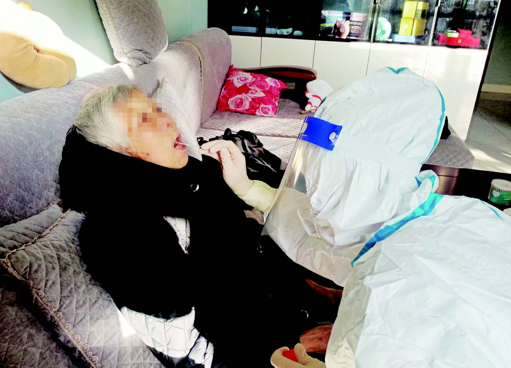 我区开展全员核酸检测以来,城南社区卫生服务中心工作人员冲锋“疫”线,坚守在辖区内各个核酸采样点,用实际行动保障全员核酸采样安全、有序、高效完成。图为工作人员为行动不便人员提供上门采样服务。
