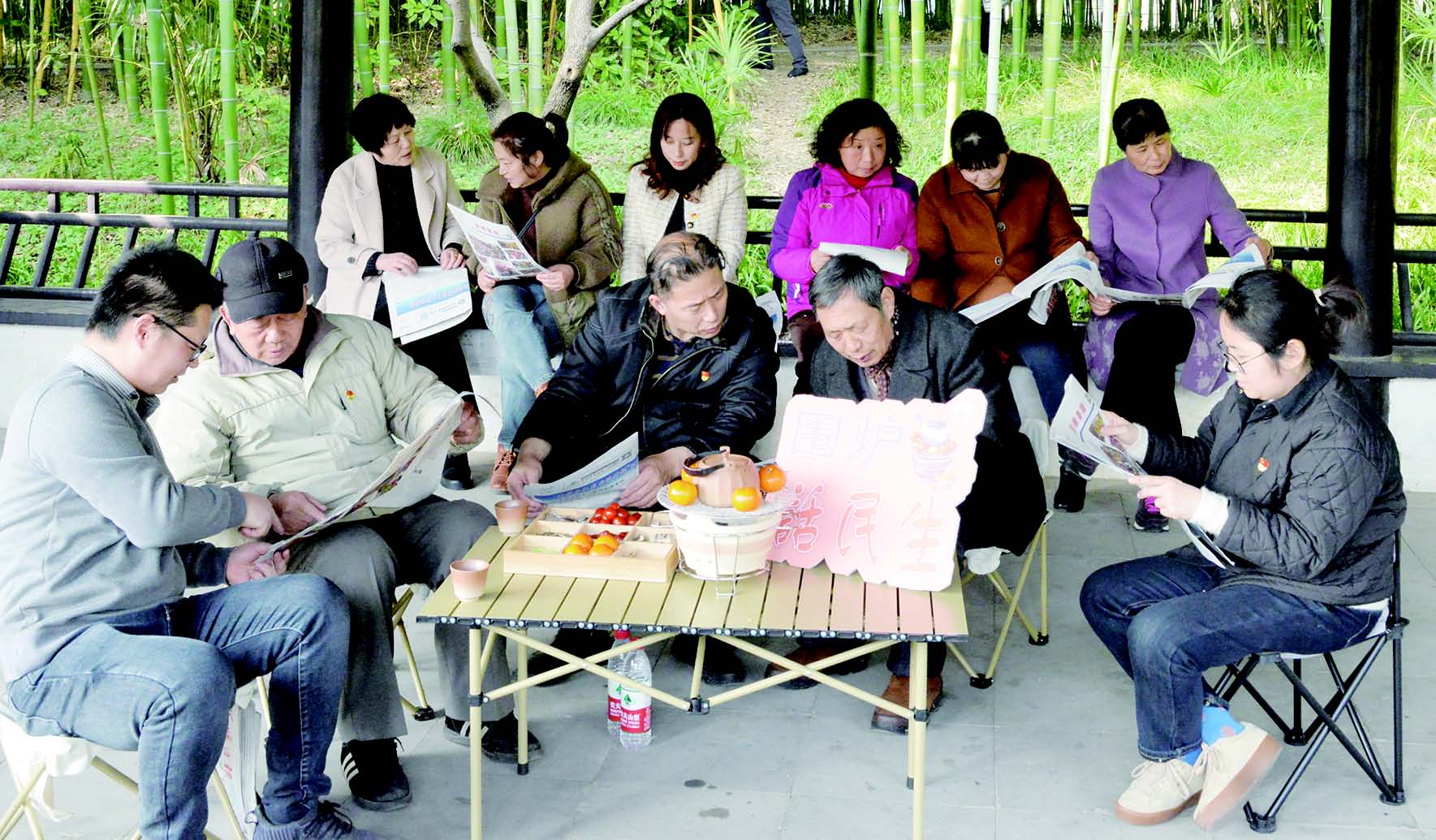 3月5日,罗塘街道南苑社区离退休干部党支部、区融媒体中心第五党支部联合开展“党群联动聚合力 围炉恳谈暖民心”活动。图为社区离退休党员、乡贤能人、网格员和党员记者围绕如何参与社区治理、提升社区服务水平、整合社区资源等内容展开探讨。