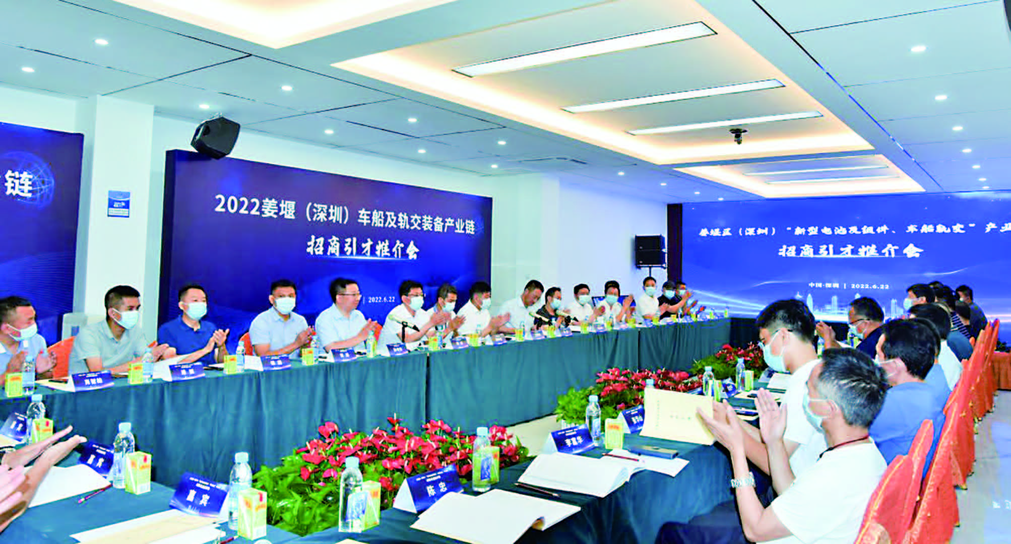 线上搭建招商云平台“空中桥梁”,开展云招商活动120余次,签约项目19个;线下牵头举办姜堰(深圳)“新型电池及组件、车船轨交”产业链招商引才推介会,邀请嘉宾、客商30余名,推介姜堰营商环境。全年新签约亿元或1000万美元以上项目185个(内资175个、外资10个),计划总投资368.76亿元(含3.18亿美元),其中招引5亿元或3000万美元以上重大项目40个。招引项目与我区“1+4”产业体系耦合度达70%,新签约项目的落地为我区产业集聚和高质量发展夯实了坚实基础。