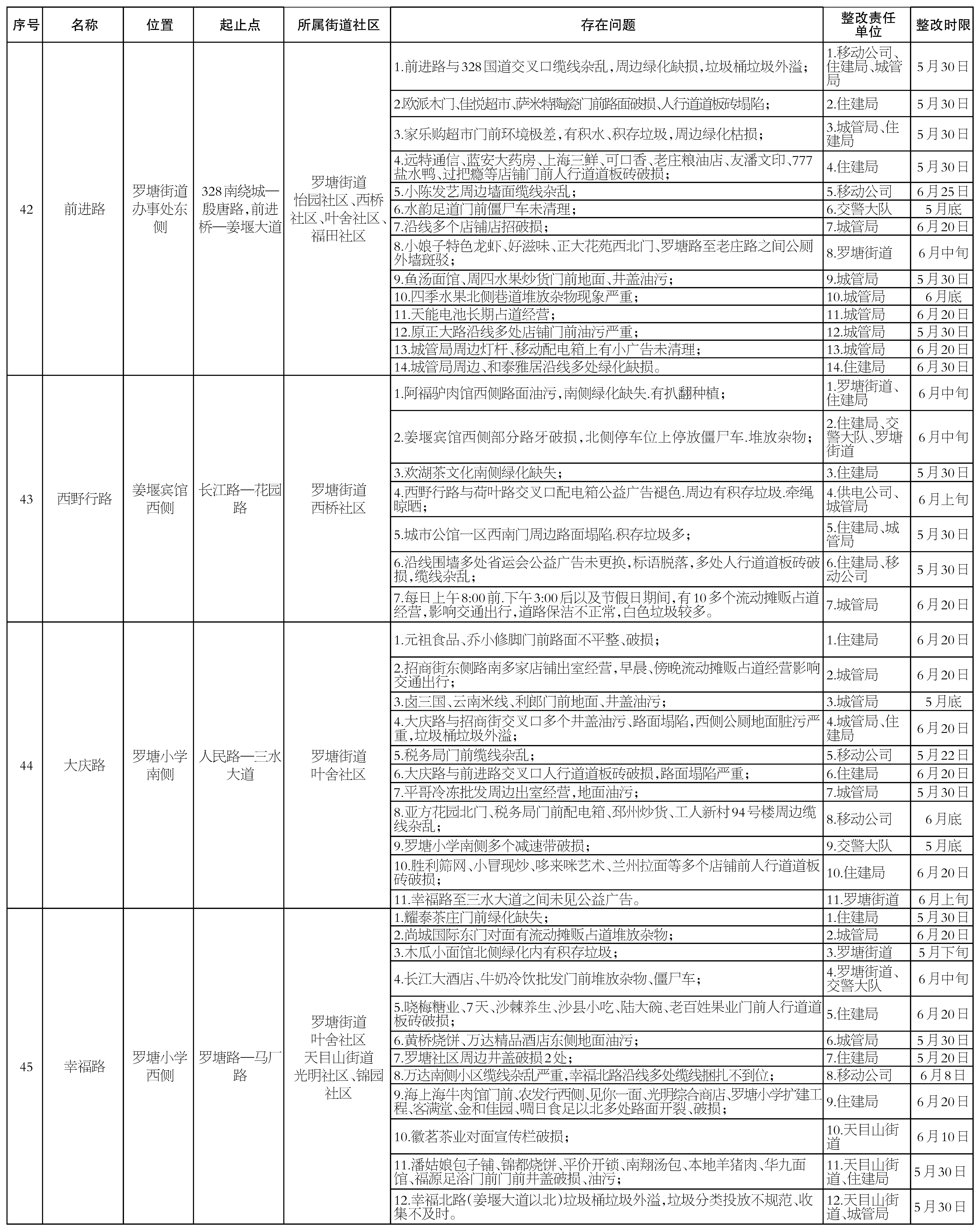 姜堰城区背街小巷创建问题整改责任清单(五)