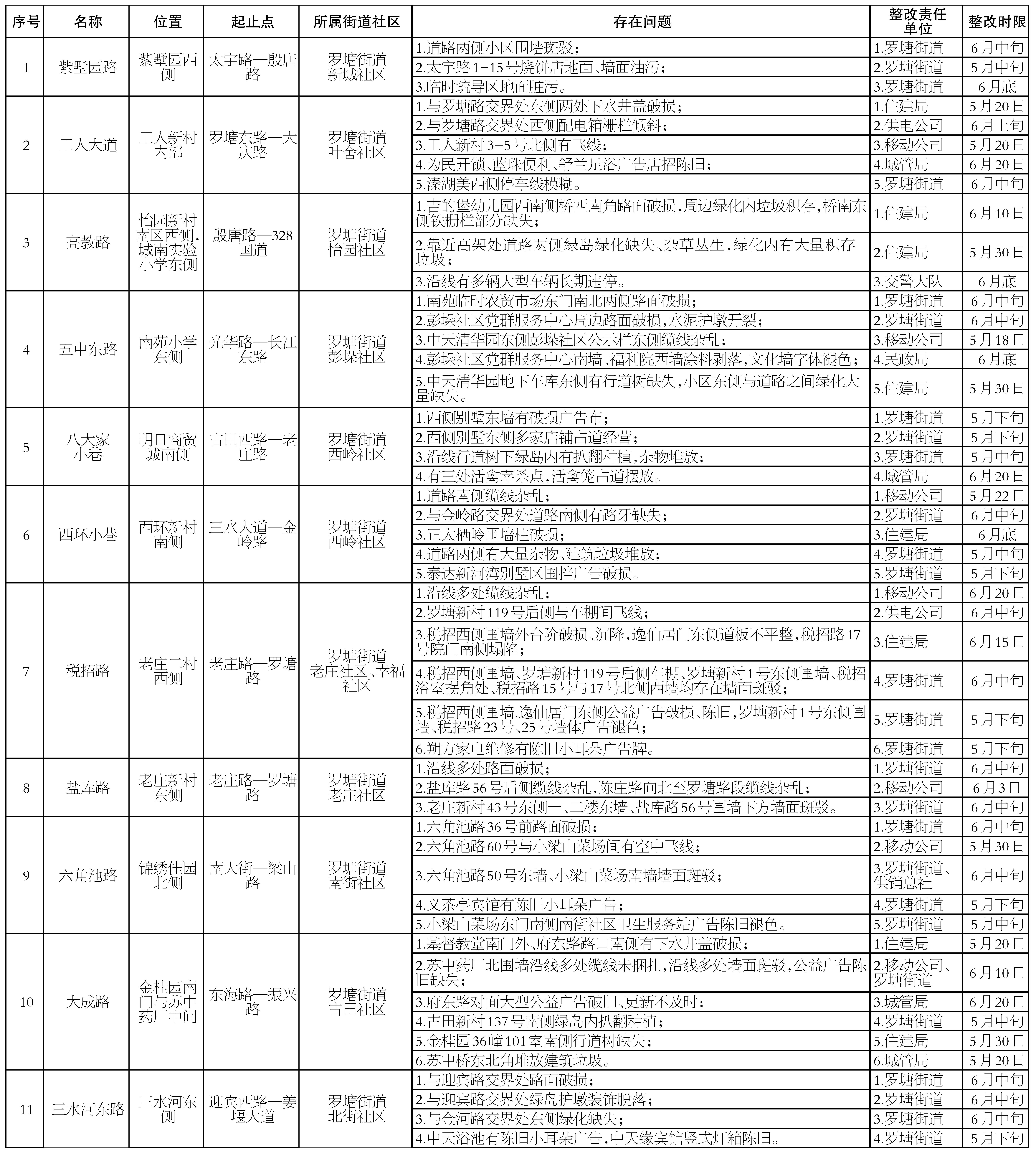 姜堰城区背街小巷创建问题整改责任清单(一)