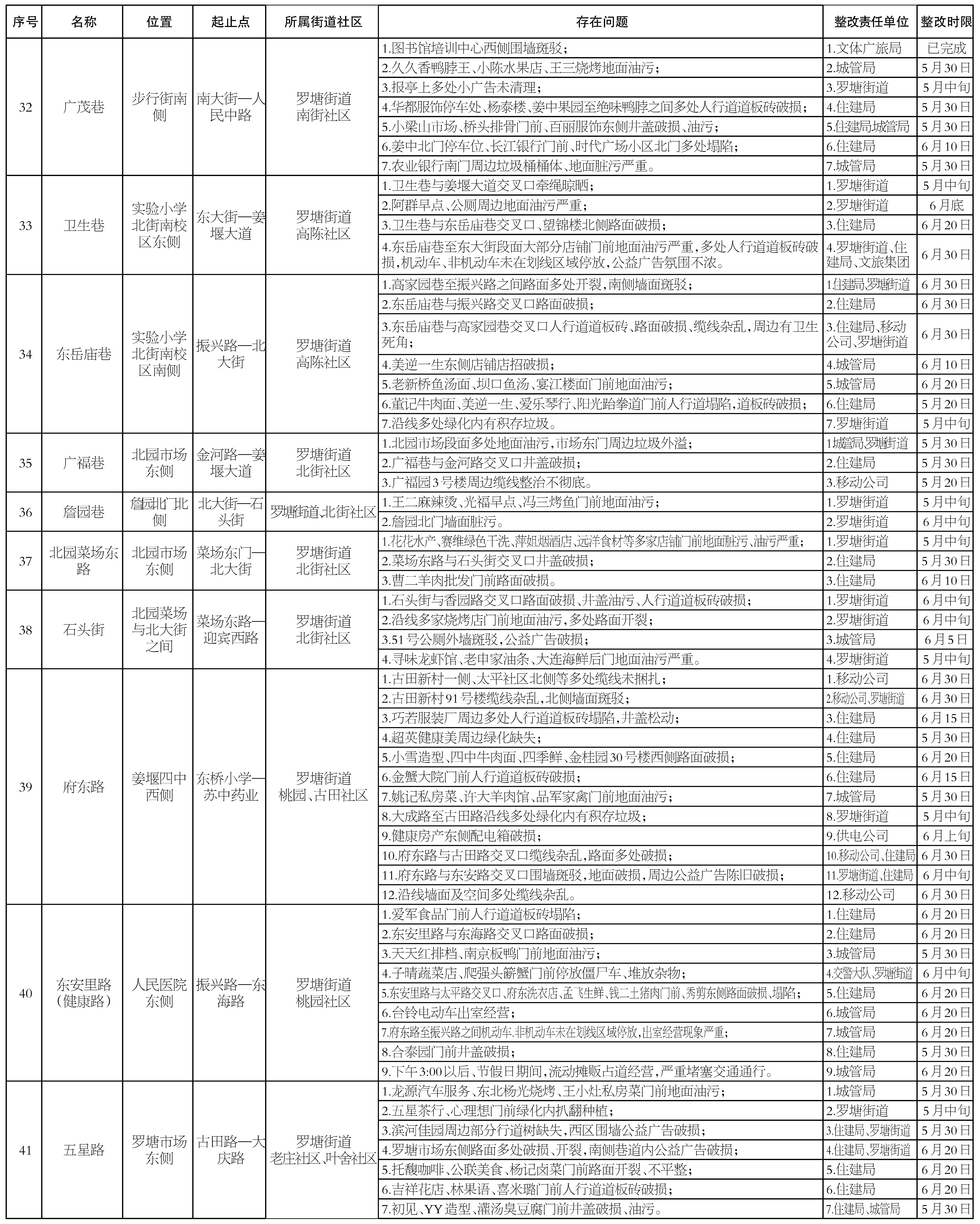姜堰城区背街小巷创建问题整改责任清单(四)