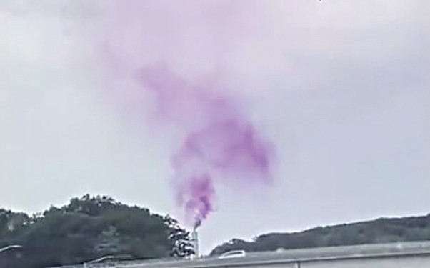 8月3日,美国缅因州波特兰市一座负责将废弃物转化为能源的工厂的烟囱里飘出粉紫色烟雾。