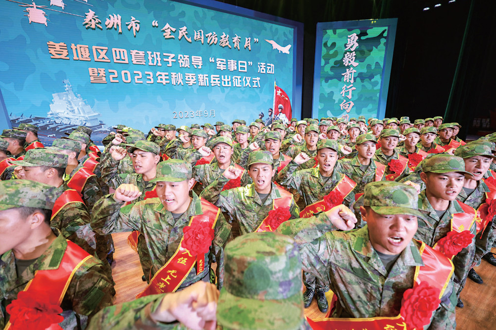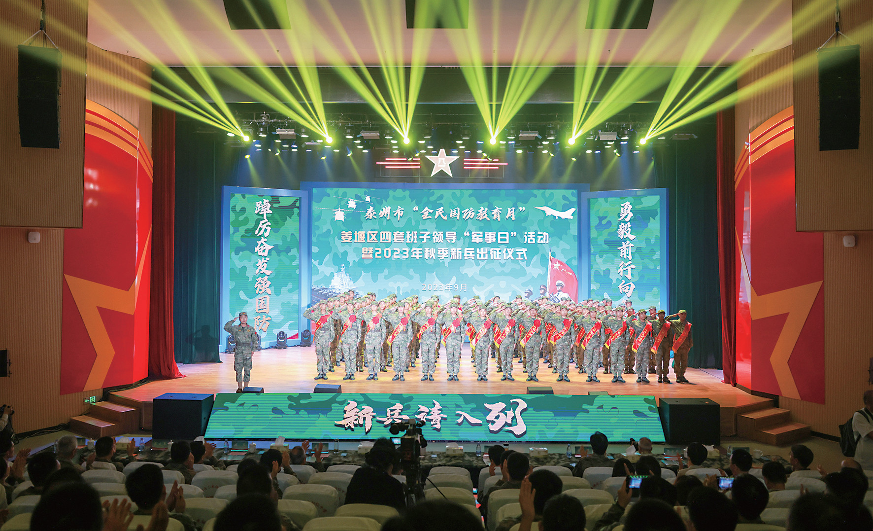 旌旗猎猎战鼓擂,姜堰青年踏征程。9月14日晚,我区举行泰州市“全民国防教育月”、姜堰区四套班子领导“军事日”活动暨2023年秋季新兵出征仪式。我区95名优秀青年即将踏上征途,圆梦军营,为保卫祖国、强军兴军贡献青春和热血。