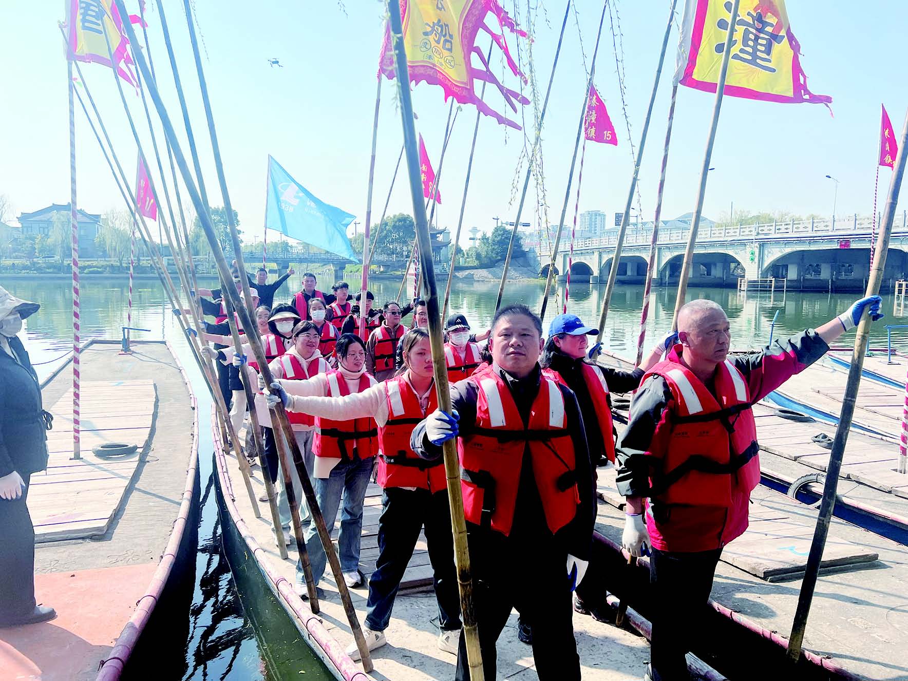 本报讯(记者 黄文婧 钱菊香)3月19日下午,记者在溱潼镇湖北村看到,该镇赛事筹备工作正在有序推进。溱潼镇各会船队在水面上劈波斩浪展开训练,一条条篙子船迎风飞驰,选手们齐声呐喊,动作整齐划一,飞篙走桨间展现“千篙如林”“万桨齐发”的震撼场面,尽显力量与速度之美。