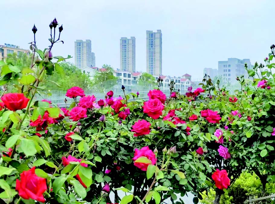 暮春时节,滨河两岸月季盛放,粉娇,红炽,黄灿,朵朵争艳。风过处,花枝摇曳,花香与水汽交融,沁人心脾。漫步其间,蜂蝶翩跹,笑语盈盈,不觉沉醉春光。